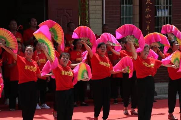 “党呵党呵!亲爱的党呵。你的形象多么崇高伟大。 党呵党呵亲爱的党呵,你就是我最亲爱的妈妈!……”6月15日上午,湖南省隆回县桃花坪街道白窑山村58名党员齐唱红歌,用歌声讴歌党的伟大成就,用舞蹈抒发党员对党最炽热的爱。