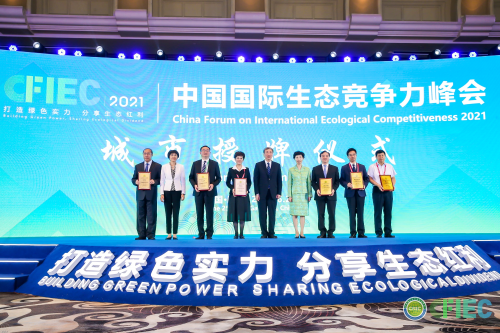 峰会发布了2021最具生态竞争力城市名单,上海奉贤区委书记庄木弟、黄山市委书记凌云、呼和浩特市市长贺海东、吉安市市长罗文江、铜仁市副市长王开禄、东营市副市长韩利学作为城市代表领取2021最具生态竞争力城市荣誉。