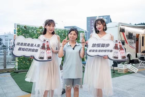 白啤生活家营地活动现场布置有斟致生活主题房车、青岛啤酒白啤售卖区、自助休息区、旅行故事角、斟享集市、游戏区等。每一个主题功能分区的设计都别出心裁,引来大量路人参与互动环节,并品鉴口感顺滑青岛白啤酒。轻柔的音乐和青岛啤酒白啤的芬芳花果香,让人仿佛置身户外旅游营地,亲身体验美好生活。