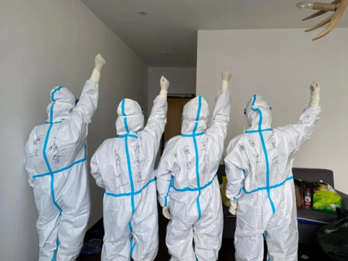 在昭山隔离点,4个片区113处,每处相隔30米,2分钟一处,来回一趟就是3个小时。这里,只有我校赵汝、唐蓉2名医务工作者。他们每天6点起床,6点半穿好防护服,紧接着去片区测体温、采核酸、送盒饭、丢垃圾、换床单……忙到上午9点返回吃个早餐后,又马不停蹄去巡逻,询问病人有什么需要、还缺什么生活用品……当采集鼻拭子、咽拭子遇到不配合的接触者时,他们还要充当“劝导员”,一天忙碌下来,直到晚上近10点,才能返回住处。