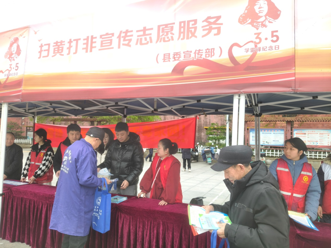 日前,宁远县委宣传部将志愿服务与净化文化环境相结合,组织志愿者走进人流量密集的文庙广场,开展“扫黄打非”专项志愿服务活动,用实际行动诠释新时代雷锋精神。