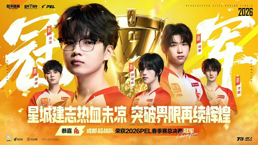 成都AG战队荣获2026PEL春季赛总决赛冠军。