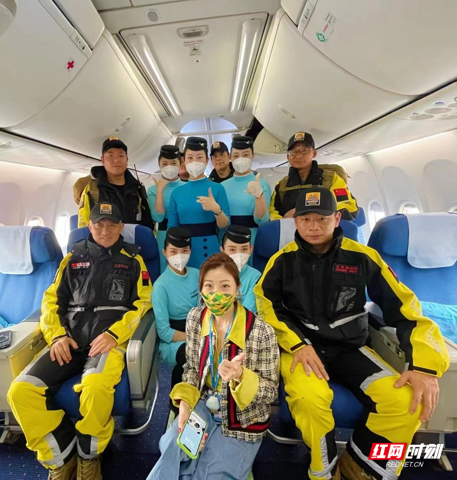 在飞行过程中,厦航乘务员通过机上广播向公羊救援队的成员们表达敬意与感谢,并预祝勇士们平安归来!本次执飞航班的厦航乘务长余旭静是公羊队的老熟人,在去年4月26日MF8255杭州-兰州的航班保障中,余旭静乘务组便同赶赴兰州执行任务的公羊勇士们相遇结识,此次跨国救援,余旭静乘务组将无比的敬意以及平安回来的祝福给予每一位公羊勇士,期待凯旋之时的再次相遇。