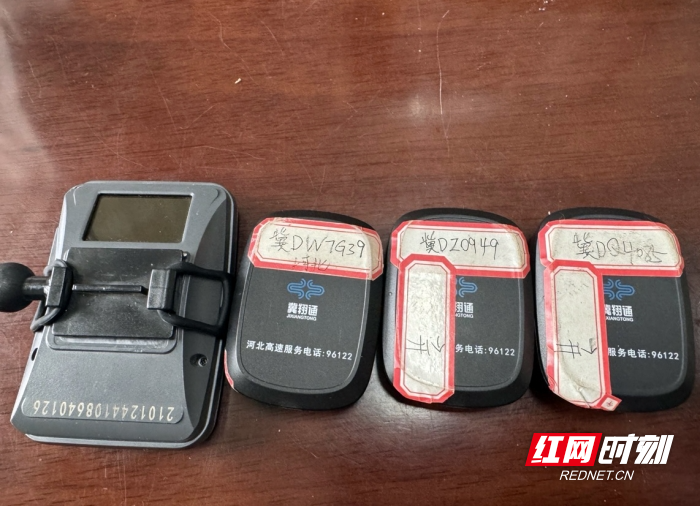 为彻底溯源车辆的违法行为,绕南公司立即协调湖南省高速公路联网收费中心(简称“省联网中心”)与交警部门,组成联合数据攻坚小组。通过调取车辆海量通行流水、高清门架记录、ETC交易数据及收费站、服务区等关键点位监控视频,展开了连续三天的深度核查取证。经核实,该车涉嫌通过非法使用小客车移动OBU设备,累计在高速公路上倒换通行卡达12次之多。此次通行通过在外省服务区拼货、加货的手段超限行驶高速,并在车内查获小车移动OBU设备共4台。