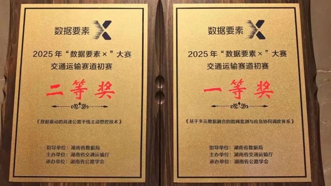 大会颁发了2025年“数据要素X”大赛相关奖项,湖南高速信科公司联合研发的“基于多元数据融合的路网监测与应急协同调度体系”“数据驱动的高速公路干线主动管控技术”“基于多元数据分析的公路基础设施监测预警系统的研究和应用”“全域多元异构数据融合赋能高速公路机电设备全生命周期管控”等多个系统榜上有名,分获大赛一、二、三等奖。